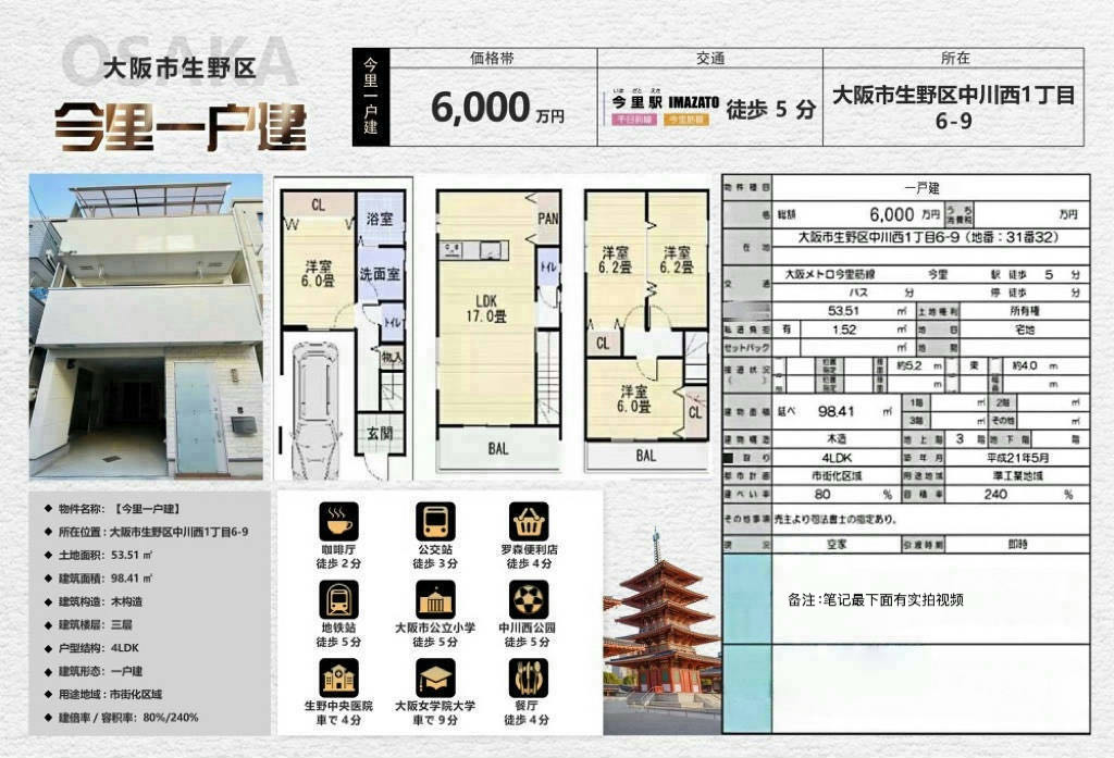 所在位置 : 大阪市?野區(qū)中川?1丁?6-9